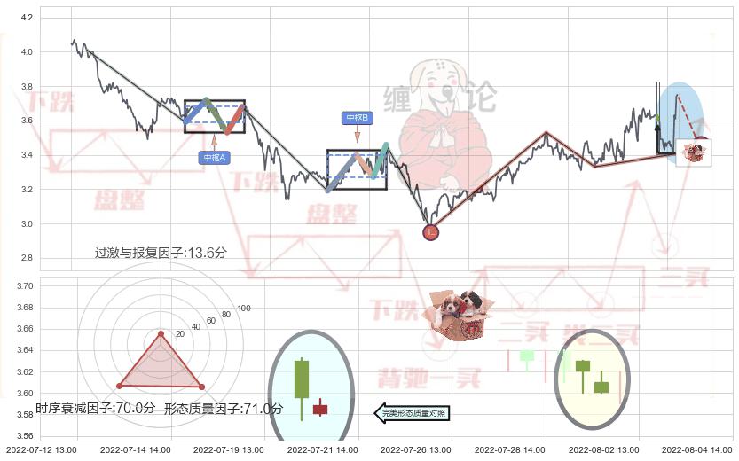 ➢ 🕰 价格走势在2022-08-05 14:00:00至2022-08-08 13:00:00期间形成淡友反攻,残存影响值:-2.41