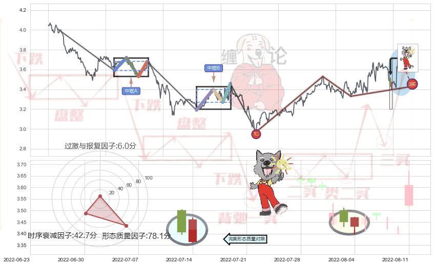 从2022-06-30 14:00至2022-08-12 14:00,共包含63个小时,阶段股价上涨11.69%,阶段股价变动位移路程比: 1 : 5