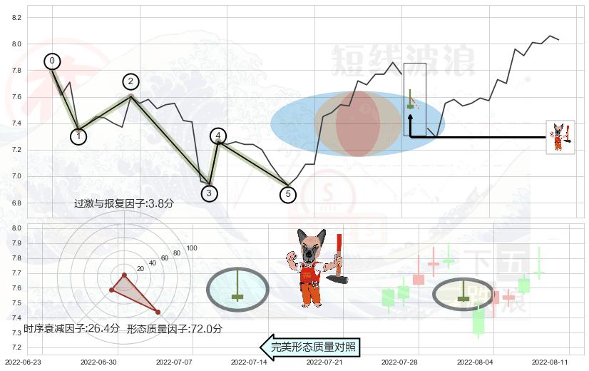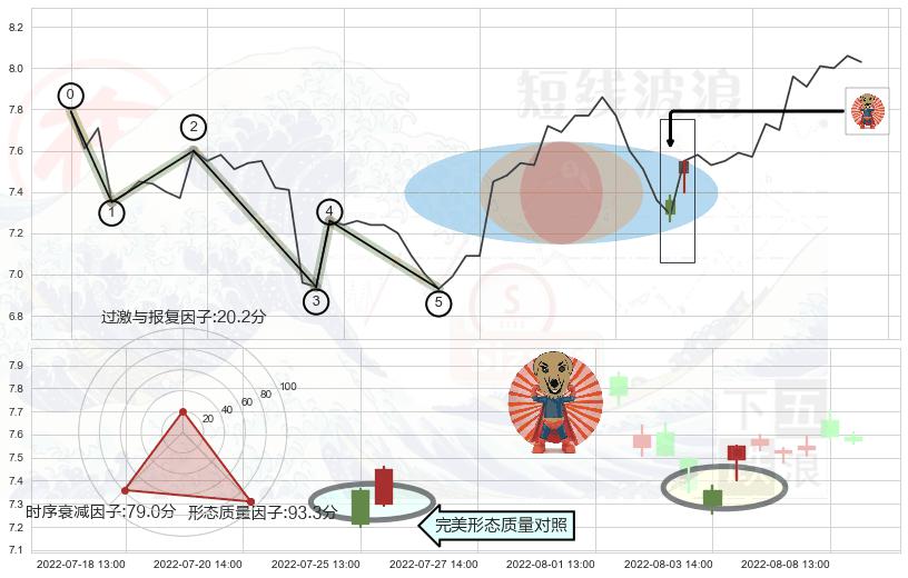 从2022-07-22 13:00至2022-08-12 14:00,共包含32个小时,阶段股价上涨15.14%,阶段股价变动位移路程比: 1 : 2