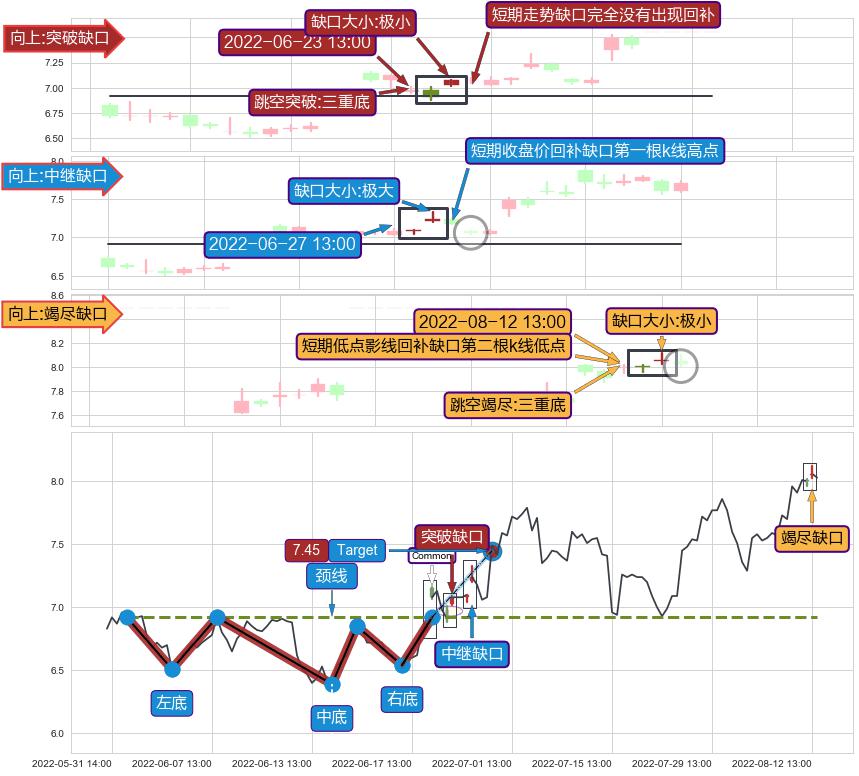 ➢ 2022-08-12 13:00形成:向上跳空【竭尽】缺口