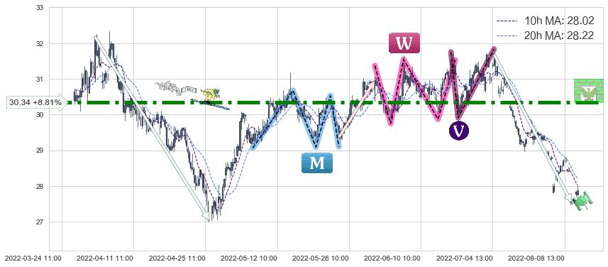 ♞ 10小时均线:28.02,20小时均线:28.22→ 快线<慢线