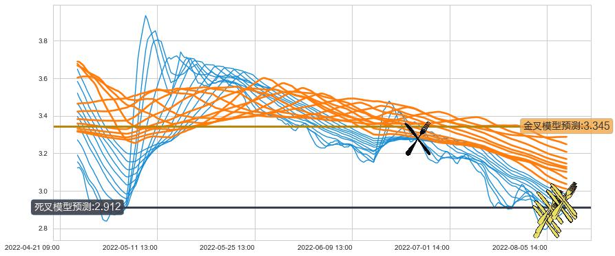 ➣ 60小时均线于(06-21 13:00: 3.276)形成【死叉】基于【死叉历史模型】预测死叉后最低波谷价格: 2.894, 死叉后最低价格2.770,已经下跌超出预测最低波谷价格, 预期反弹