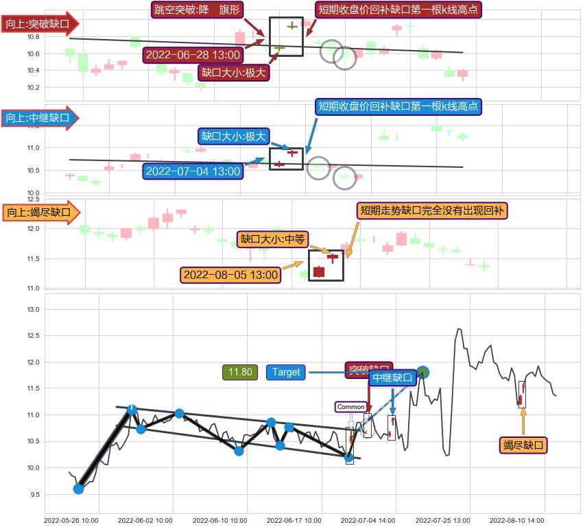 ➢ 2022-08-05 13:00形成:向上跳空【竭尽】缺口