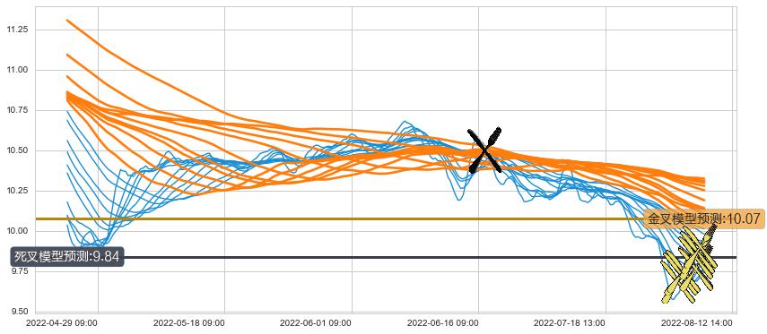 ➣ 40小时均线于(08-11 14:00: 9.90)形成【金叉】基于【金叉历史模型】预测金叉后最高波峰价格: 10.15, 金叉后最高价格9.93,尚未达到预测最高波峰价格, 预期继续上涨
