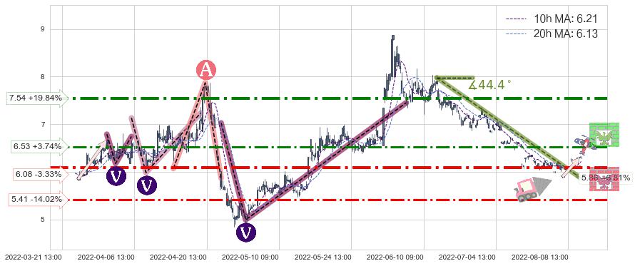 ♘ 支撑价格位5.41,可信任强度55.67%,距离最后交易2022-08-12 14:00形成的收盘价格6.29相差 -14.02%