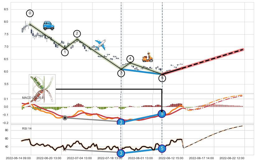 ➣ 上涨螺旋桨形态 + 波浪理论下跌浪:浪5反弹拐点信号叠加后【反向回撤率】极低,【看多】信号叠加【存续影响极大】