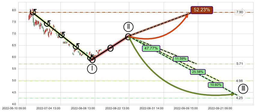 ♘ 阻力价格位6.53,可信任强度67.41%,距离最后交易2022-08-12 14:00形成的收盘价格6.29相差 +3.74%
