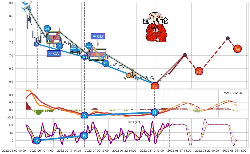 ➣ 缠论买卖点:下降缠中枢AB形成后猜想拐点1买已到达,猜想后续持续拉升(均值回复)