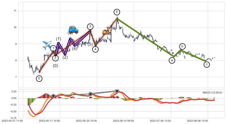 ➣ 波浪理论:猜想达到c点后小回调终止反转上涨 → 上涨 → 【拐点】临近 → 阶段均值回复结束后继续大周期趋势跟踪