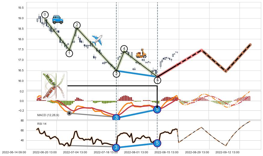 ➢ 上涨螺旋桨形态 + 波浪理论下跌浪:浪5反弹拐点信号叠加后【信号初始稳固度】极高,【看多】信号叠加【可信度影响极大】