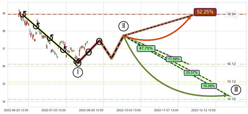 ➣ D点拟合预测价格18.01,距离最后交易收盘价格17.35相差 +3.82%