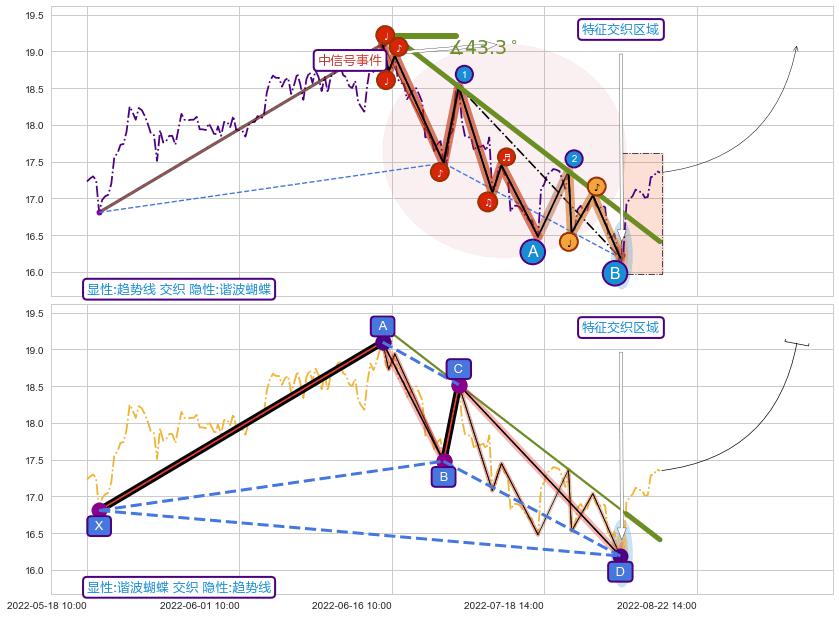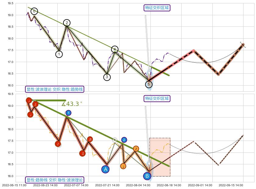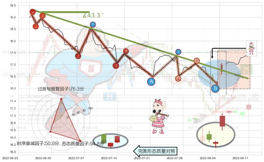 ➣ 2022-06-15 13:00-2022-08-05 13:00下跌趋势存在反转上涨[机会],其原下跌趋势的阻力位(16.41)已被突破[强支撑信号],原下跌趋势角度: 43.3˚