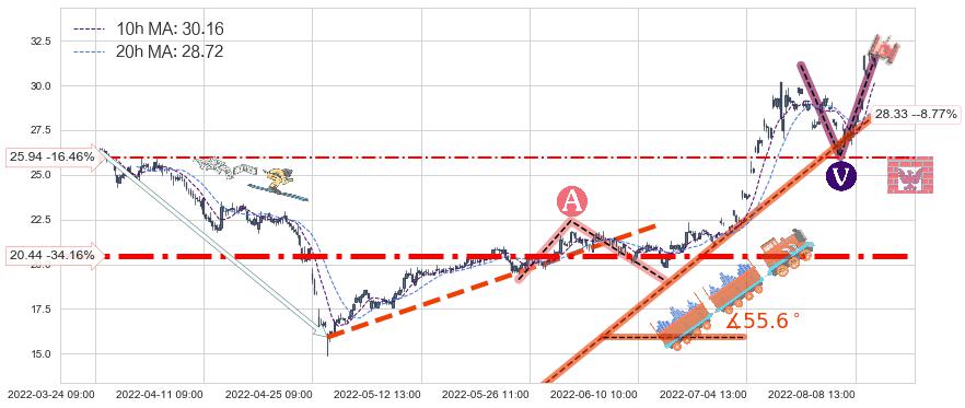 ♞ 10小时均线:30.16,20小时均线:28.72→ 快线>慢线