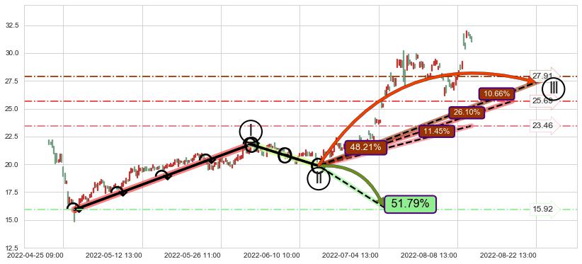 ➢ 循环浪继续向上【最低】位置(08-12:14, 23.46),匹配聚类样本比例23.75%, 可能性概率11.45%