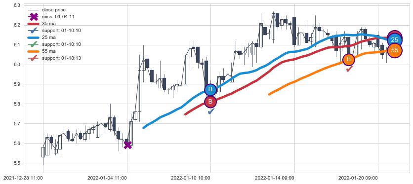 👍 尚未达到多条均线预测的最高波峰价格的平均值, 预期继续上涨