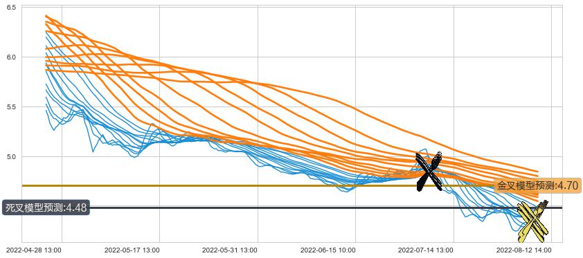 ➣ 60小时均线于(07-05 14:00: 4.81)形成【死叉】基于【死叉历史模型】预测死叉后最低波谷价格: 4.41, 死叉后最低价格4.21,已经下跌超出预测最低波谷价格, 预期反弹
