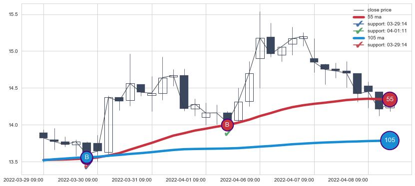 ➣ 55小时均线于(07-13 14:00: 12.34)形成【死叉】基于【死叉历史模型】预测死叉后最低波谷价格: 11.33, 死叉后最低价格9.93,已经下跌超出预测最低波谷价格, 预期反弹