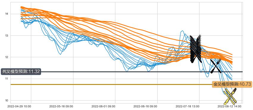 ➢ 45小时均线于(07-13 14:00: 12.46)形成【死叉】基于【死叉历史模型】预测死叉后最低波谷价格: 11.43, 死叉后最低价格9.93,已经下跌超出预测最低波谷价格, 预期反弹