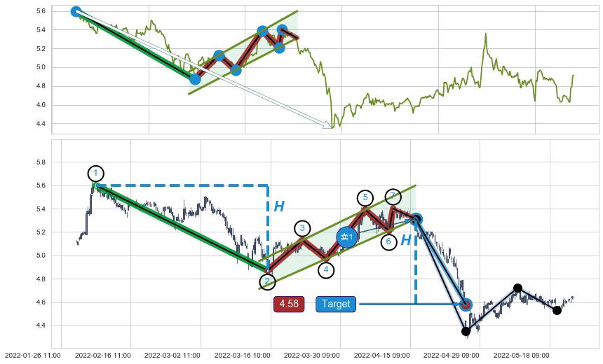 ➣ D点拟合预测价格6.20,距离最后交易收盘价格4.91相差 +26.26%