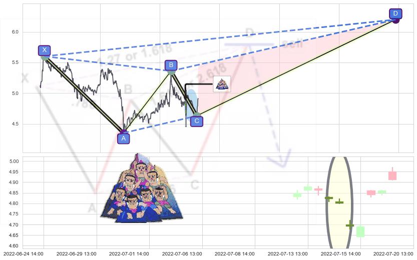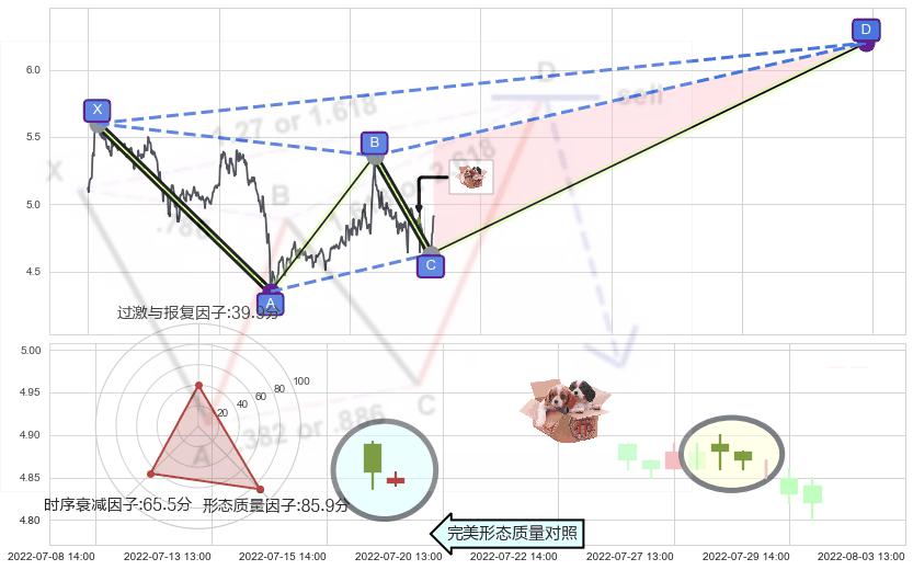 ➣ 谐波蝴蝶:猜想c点下沉接近b点后强支撑来临拉升上涨(均值回复)