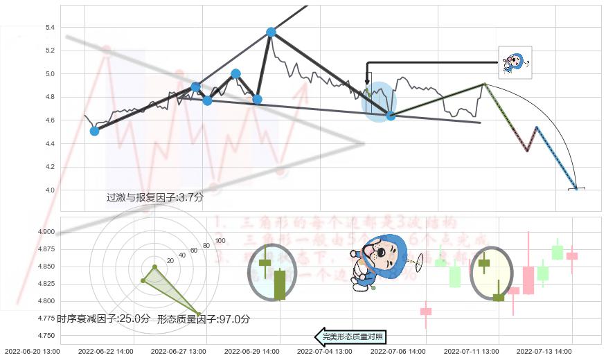 ➢ 🕰 价格走势在2022-07-08 14:00:00至2022-07-11 13:00:00期间形成下跌螺旋桨,残存影响值:-2.31