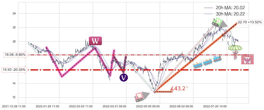 ♞ 20小时均线:20.02,30小时均线:20.22→ 快线<慢线