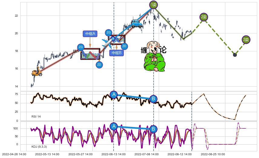 ➣ 缠论买卖点:猜想2卖持续蓄力下跌至3卖 → 下跌 → 风险信号 → 小趋势跟踪