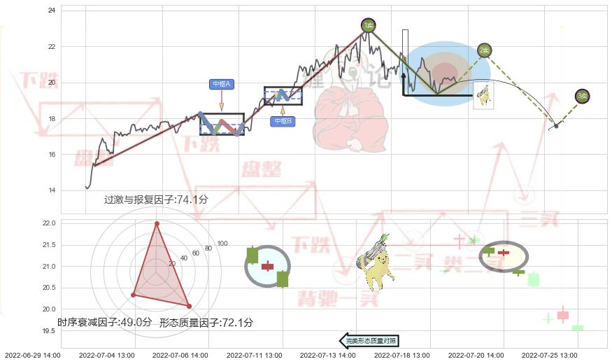 ➢ 🕰 价格走势在2022-07-20 13:00:00至2022-07-21 13:00:00期间形成空方炮,残存影响值:-0.41