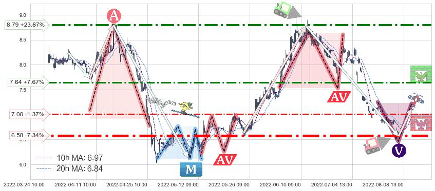 ♘ 阻力价格位7.64,可信任强度64.68%,距离最后交易2022-08-12 14:00形成的收盘价格7.10相差 +7.67%