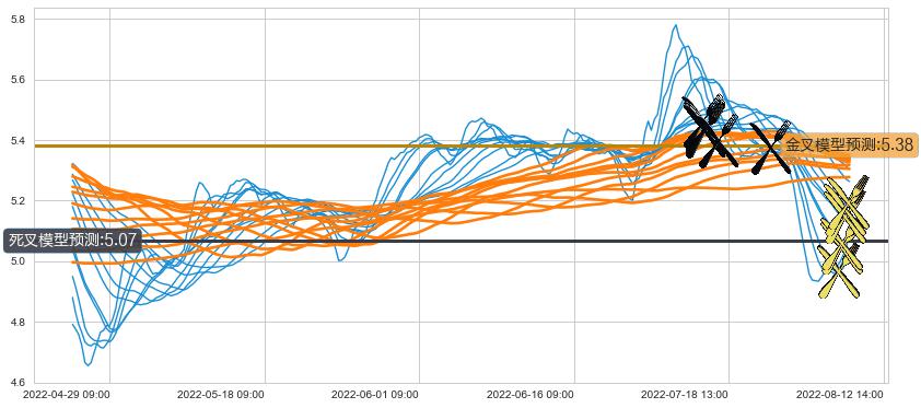 ➣ 60小时均线于(07-12 13:00: 5.43)形成【死叉】基于【死叉历史模型】预测死叉后最低波谷价格: 5.09, 死叉后最低价格4.88,已经下跌超出预测最低波谷价格, 预期反弹