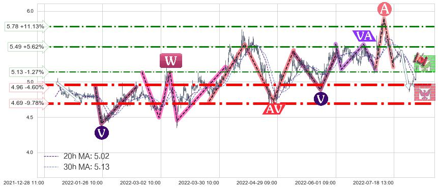♞ 20小时均线:5.02,30小时均线:5.13→ 快线<慢线