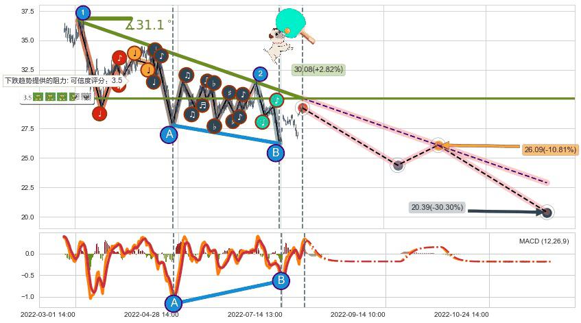 ♞ 延续前期下跌趋势提供的关键价格位有1个:30.08,将对后续走势造成一定阻力