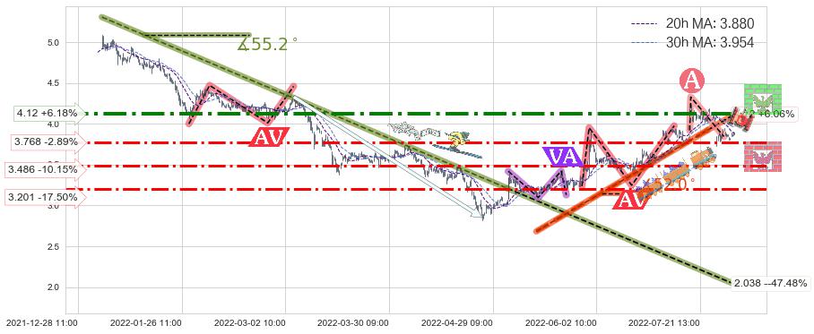 ♞ 20小时均线:3.880,30小时均线:3.954→ 快线<慢线