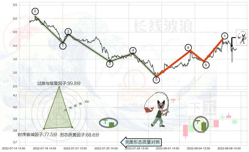 从2022-07-14 13:00至2022-08-12 14:00,共包含44个小时,阶段股价下跌-6.47%,阶段股价变动位移路程比: 1 : 6