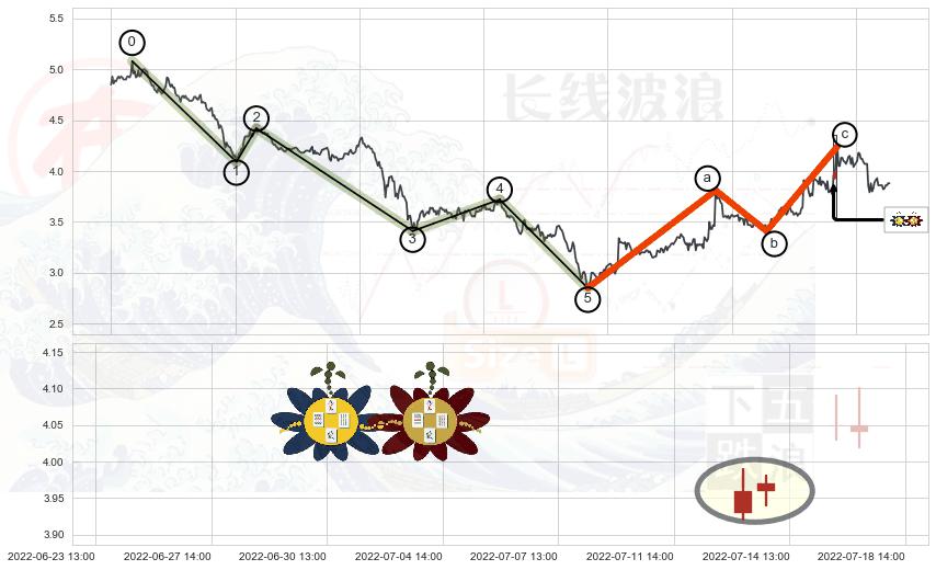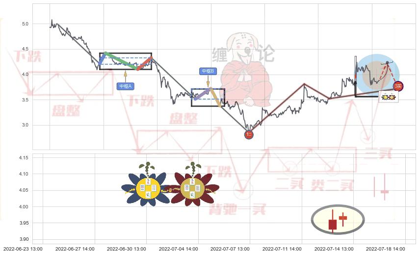 ➢ 🕰 价格走势在2022-07-27 14:00:00至2022-07-28 13:00:00期间形成下跌螺旋桨,残存影响值:-4.46