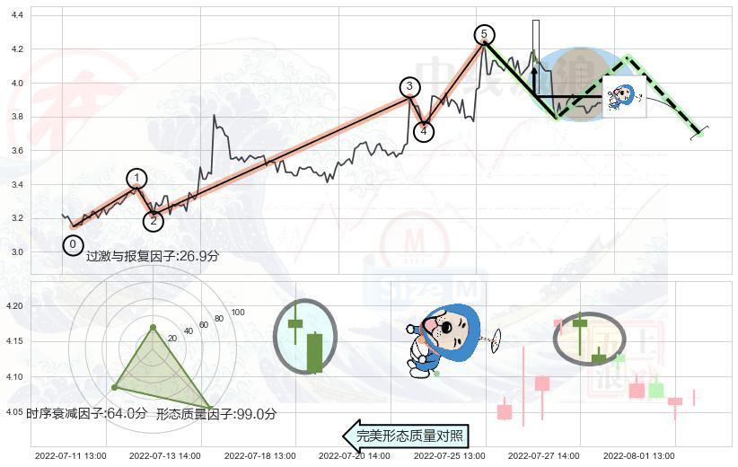 ➢ 🕰 价格走势在2022-08-04 00:00:00至2022-08-08 00:00:00期间形成黄昏之星(夜星),残存影响值:-3.37