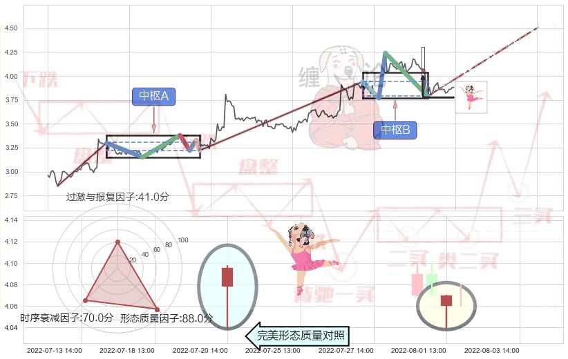 ➣ 上涨螺旋桨形态 + 缠论中枢点突破中枢B阻力拉升信号叠加后【信号初始稳固度】中等,【看多】信号叠加【可信度影响中等】