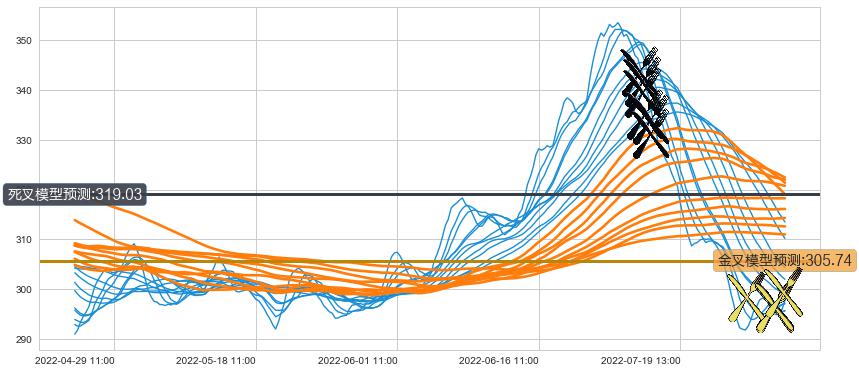 ➣ 55小时均线于(07-08 14:00: 334.79)形成【死叉】基于【死叉历史模型】预测死叉后最低波谷价格: 318.49, 死叉后最低价格288.85,已经下跌超出预测最低波谷价格, 预期反弹