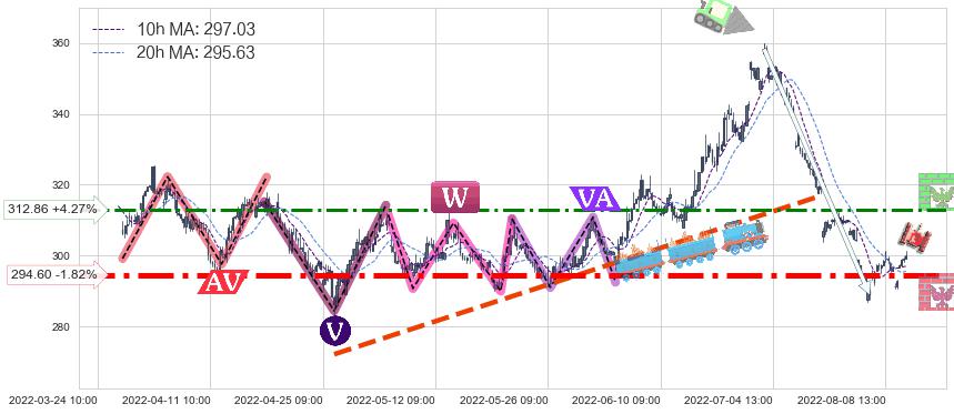 ♘ 支撑价格位294.60,可信任强度94.57%,距离最后交易2022-08-12 14:00形成的收盘价格300.06相差 -1.82%