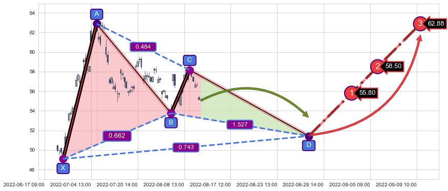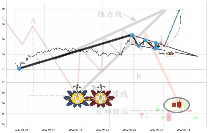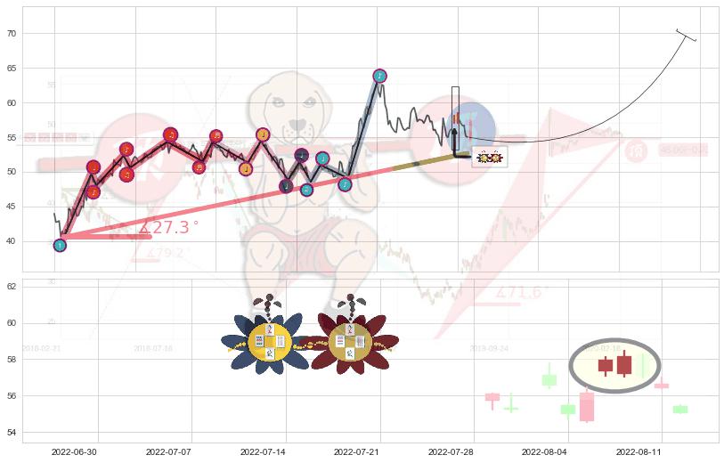 ➣ D点拟合预测价格51.42,距离最后交易收盘价格55.04相差 -6.58%