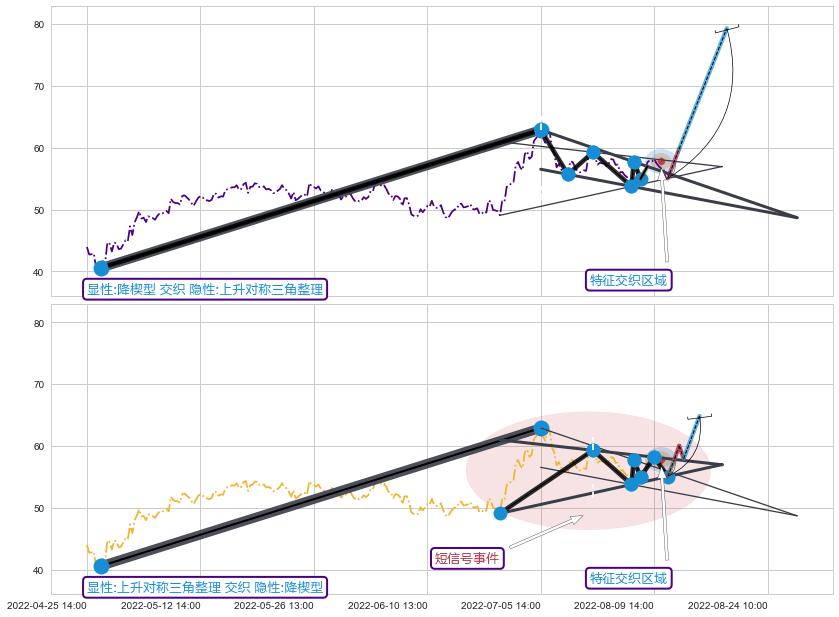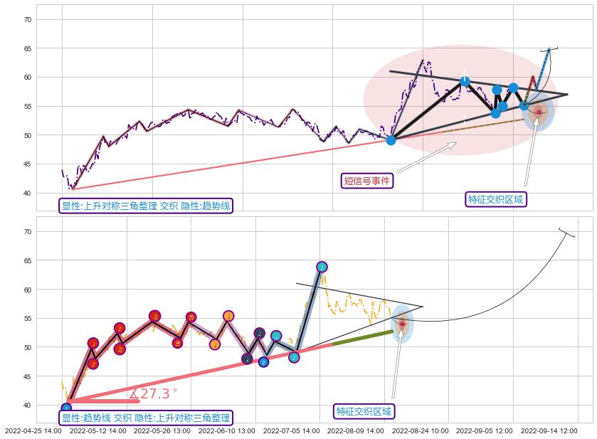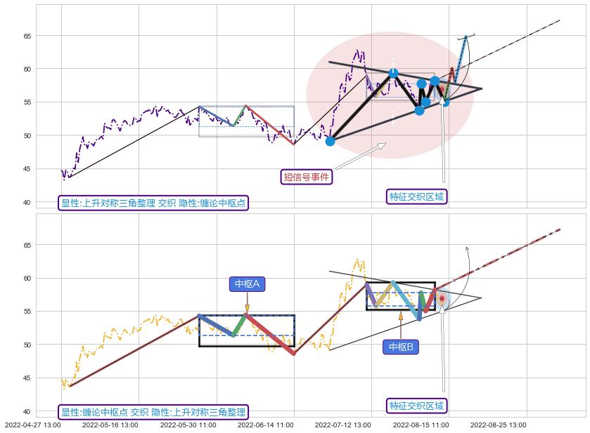 ➢ 上升对称三角整理属【短级别信号事件】缠论中枢点属【长级别信号事件】长短周期组合信号事件, 短长事件长度比30.99%