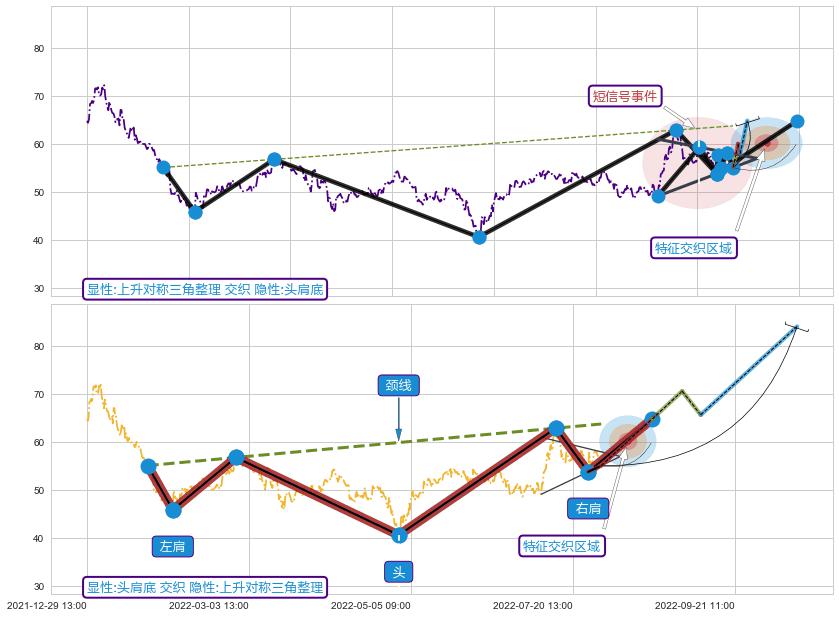 ➢ 上升对称三角整理属【短级别信号事件】头肩底属【长级别信号事件】长短周期组合信号事件, 短长事件长度比12.12%