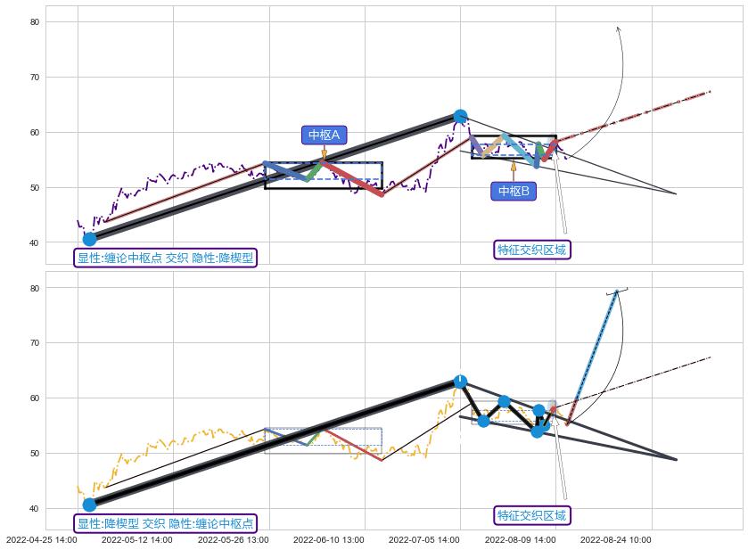 ➣ 缠论中枢点:猜想突破中枢B后持续拉升 → 上涨 → 突破中枢B阻力 → 持续趋势跟踪