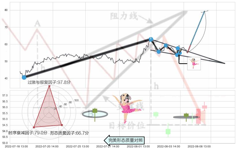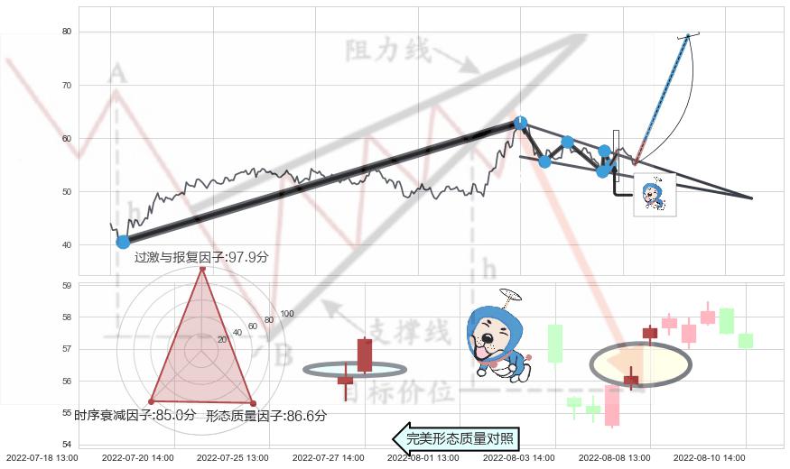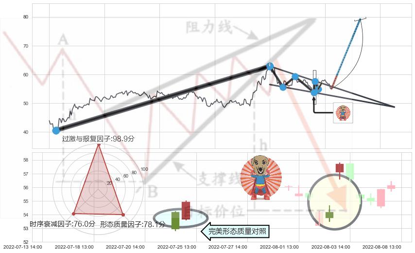 ➢ 🕰 价格走势在2022-08-05 14:00:00至2022-08-08 13:00:00期间形成上涨螺旋桨形态,残存影响值:7.94
