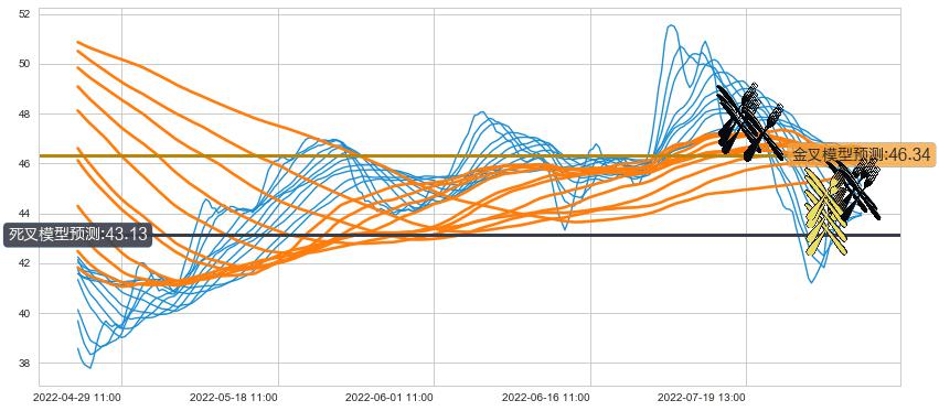 ➣ 80小时均线于(07-21 14:00: 47.11)形成【死叉】基于【死叉历史模型】预测死叉后最低波谷价格: 44.12, 死叉后最低价格40.66,已经下跌超出预测最低波谷价格, 预期反弹