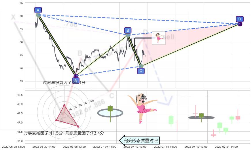 ➣ BC回撤位置在AB的76.6%,符合形态要求