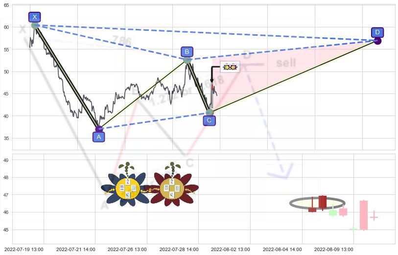 ➢ 谐波伽利:b下跌接近c:猜想支撑性拉升 → 上涨 →【拐点】支撑临近 → 大趋势均值回复