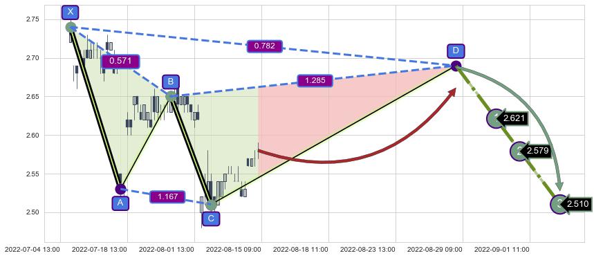 ➣ D点拟合预测价格2.690,距离最后交易收盘价格2.580相差 +4.26%