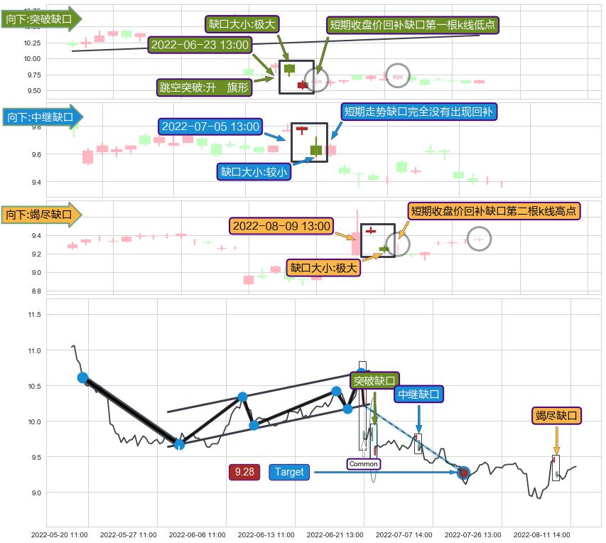 ➢ 2022-08-09 13:00形成:向下跳空【竭尽】缺口