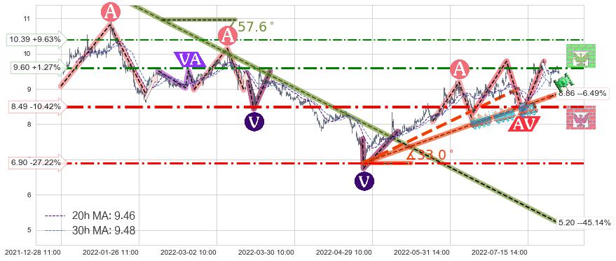 ♞ 20小时均线:9.46,30小时均线:9.48→ 快线<慢线